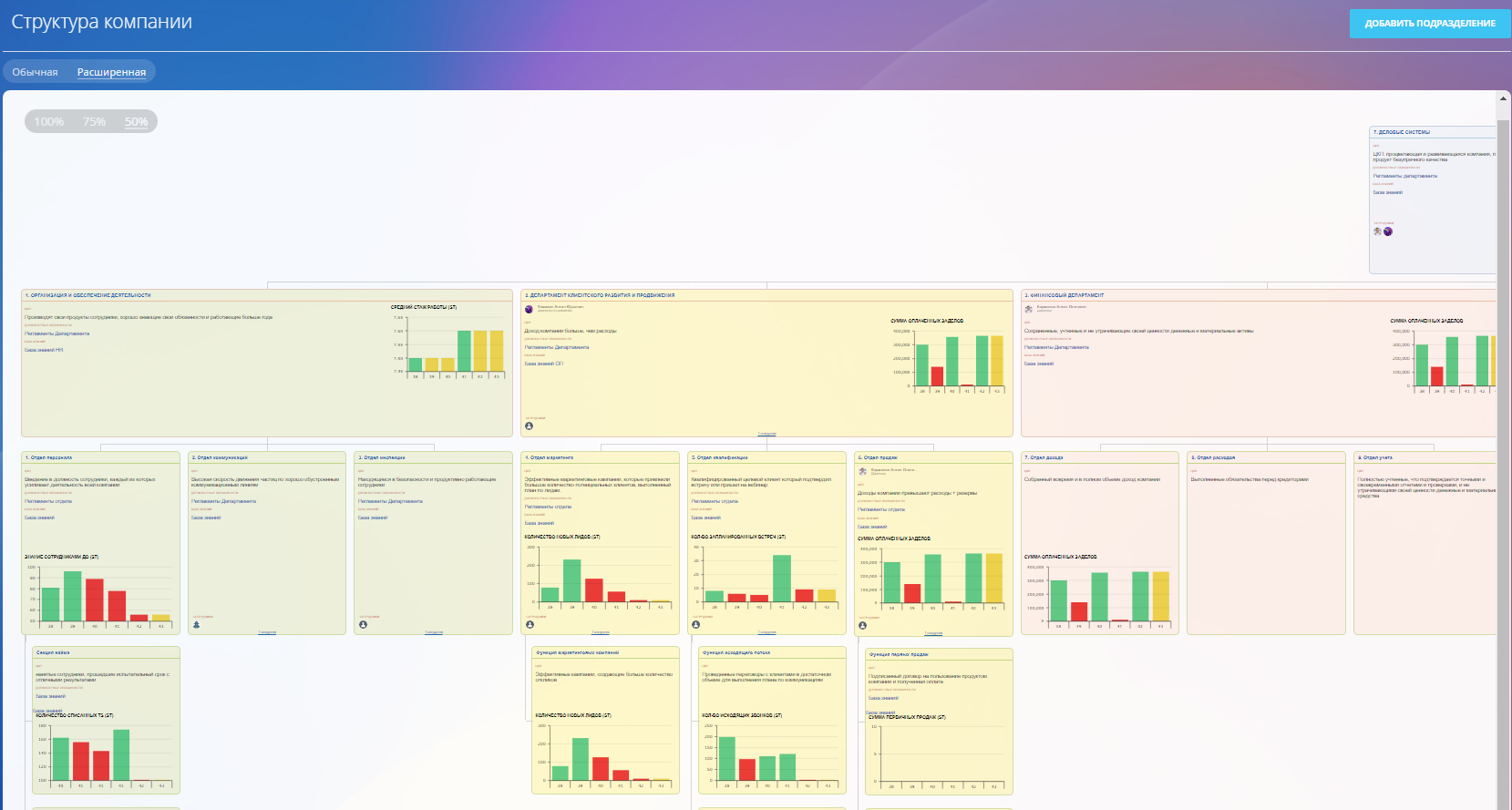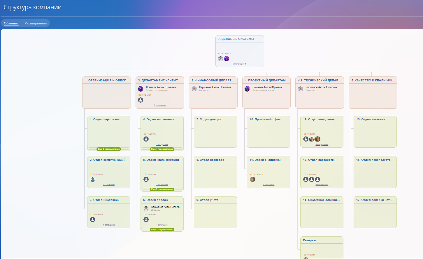 Если у вас несколько направлений бизнеса, вы можете настроить и несколько оргсхем.